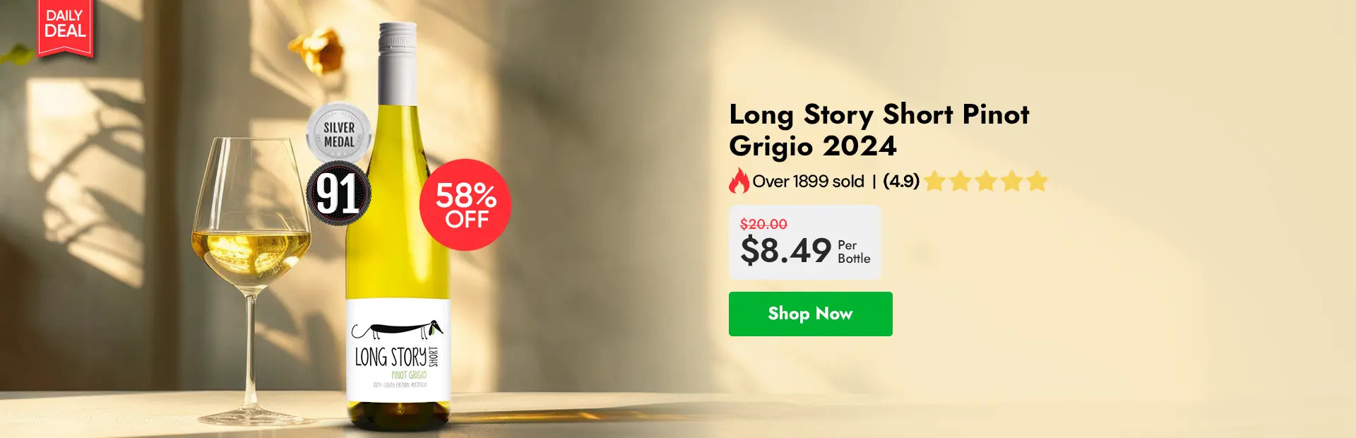 Per bottle$20.00$8.50Pack of 12$240.00$102.00Original priceOriginal price Original priceOriginal pricePrice $8.50Exclusive to Just Wines, the Long Story Short Chardonnay 2024 is crafted for easy sipping and enjoying life’s simple moments. It’s a tale best told...